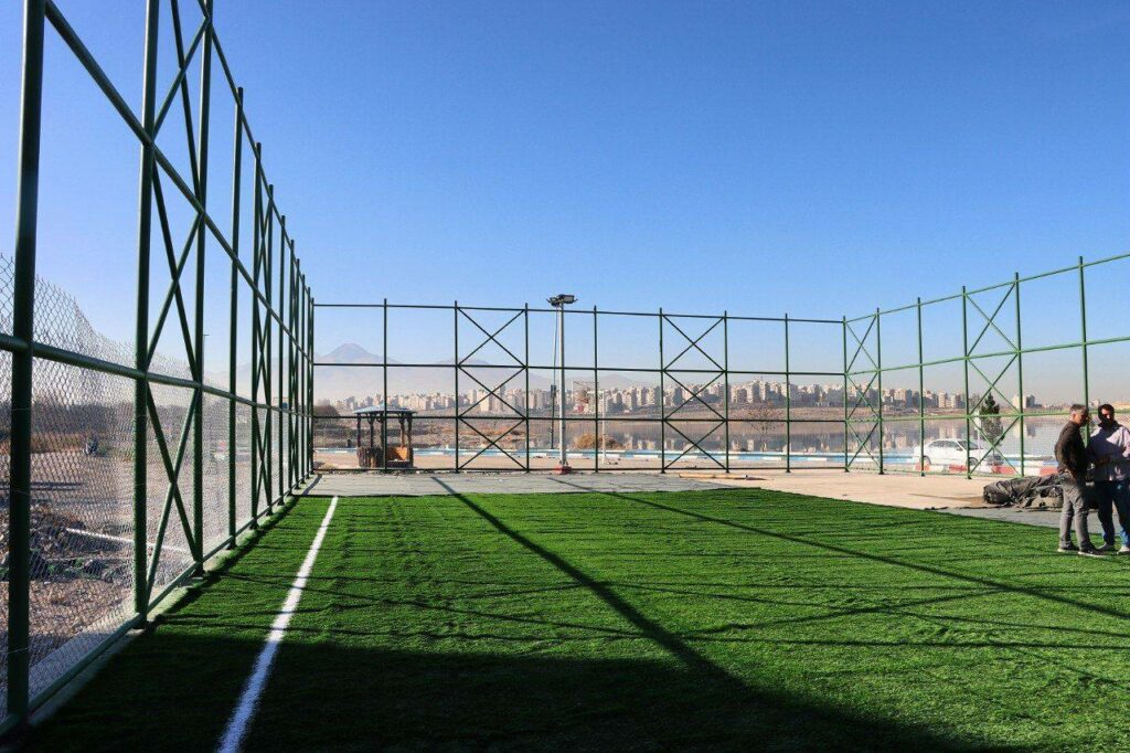 مراحل پایانی احداث زمین ورزشی چمن مصنوعی جنب پارک خانواده در بخش ضلع جنوبی منطقه گردشگری شورابیل